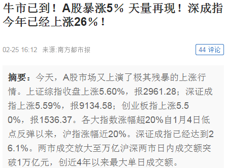 2月25日大盘创下2015年7月以来最大涨幅