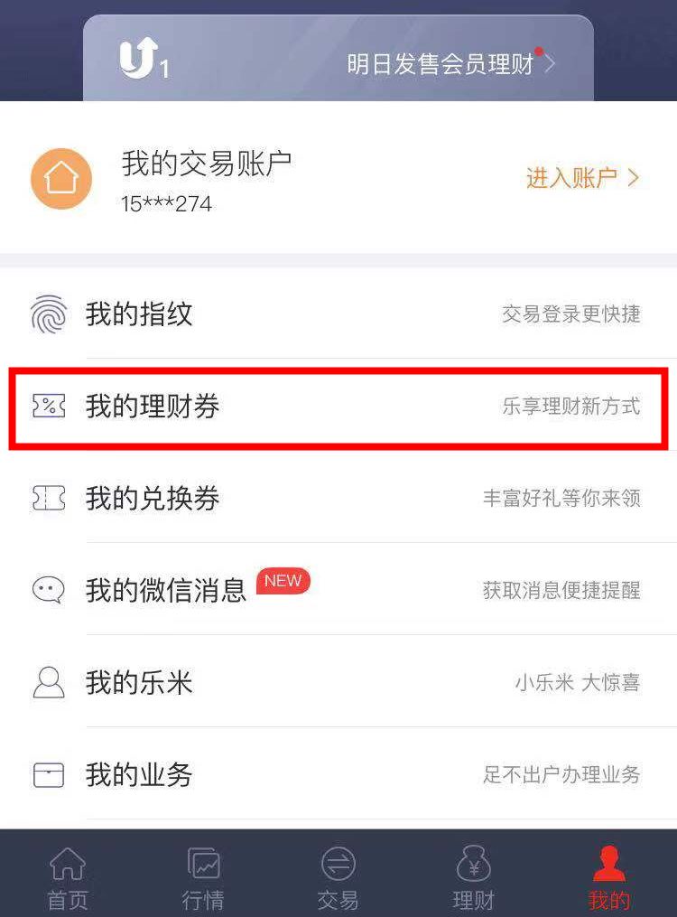 点击右下角“我的”—“我的理财券”