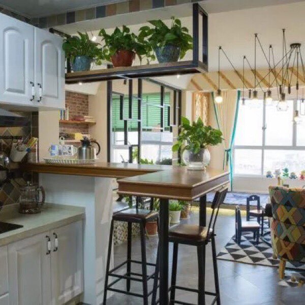 厨房要尽可能的增加收纳的空间,厨房的调味品种类可是很多很多的。好好利用厨房空间,吊柜橱柜的内部设计都要合理运用,像吊柜就可以配上升降架,不用垫脚就可以拿到吊柜中的物品。