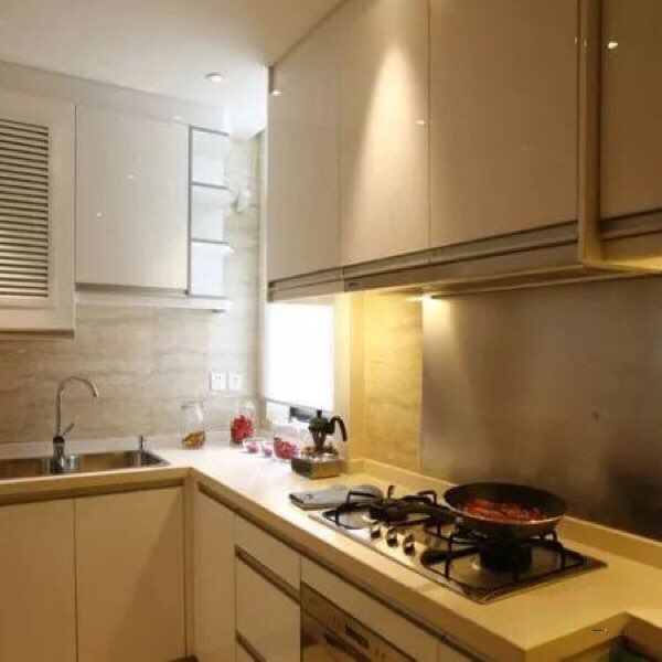 因为厨房油烟多,不容易清洗,所以肯定是要放弃布艺的窗帘,可以用铝合金的百叶窗,好清理!