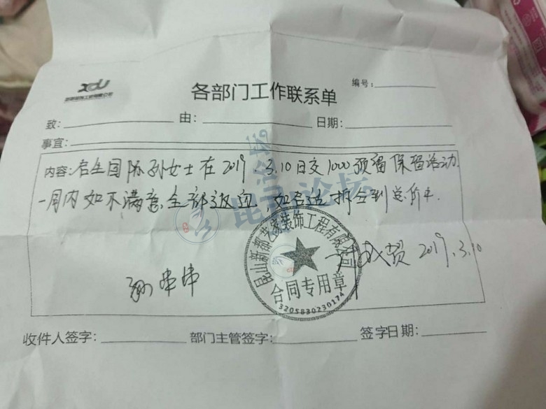 [曝光维权]昆山新都装饰公司原九创装饰疑似跑路?交了1千块预留金怎么要回来? [复制链接]