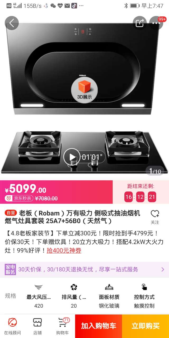 kson2004:侧吸没试过,看你家炒菜重油不是油烟都会乱跑的, (2019-04-08 08:17)