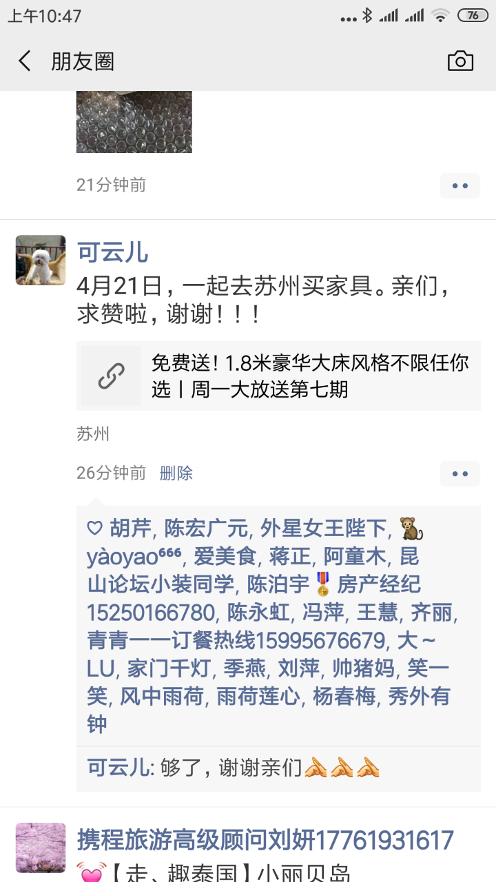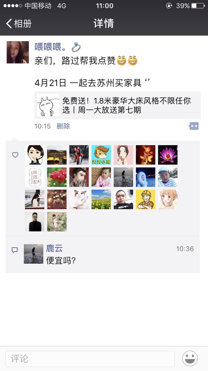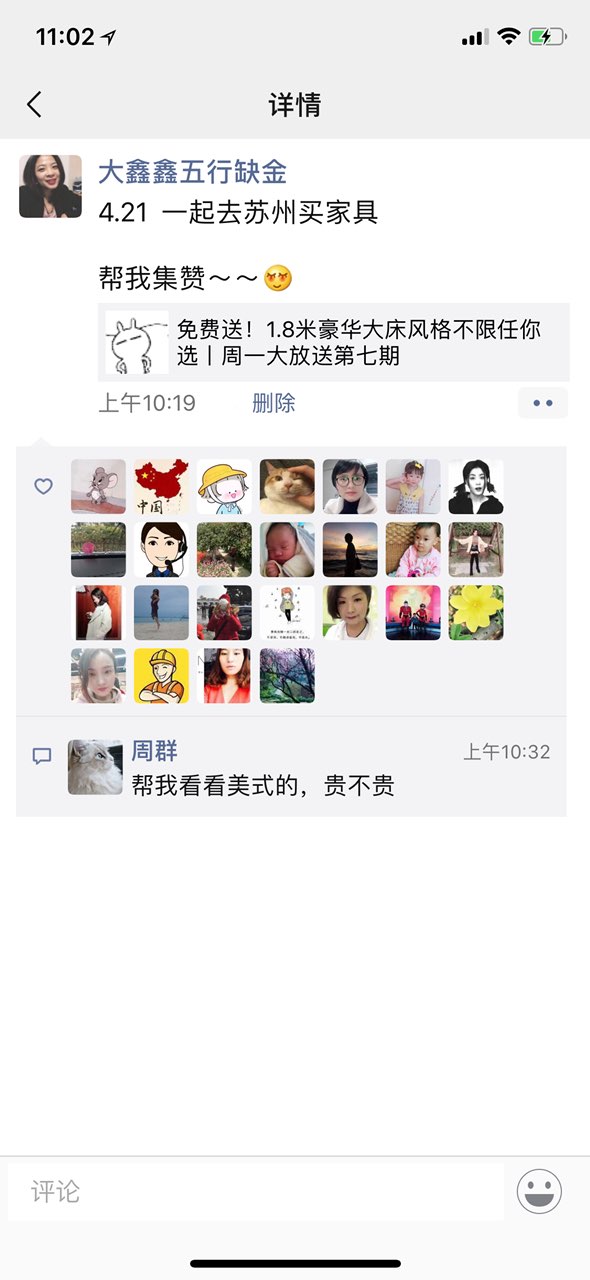 ① 不屏蔽任何人,分享本链接至微信朋友圈,并附:“4月21日 一起去苏州买家具” 集齐22个赞