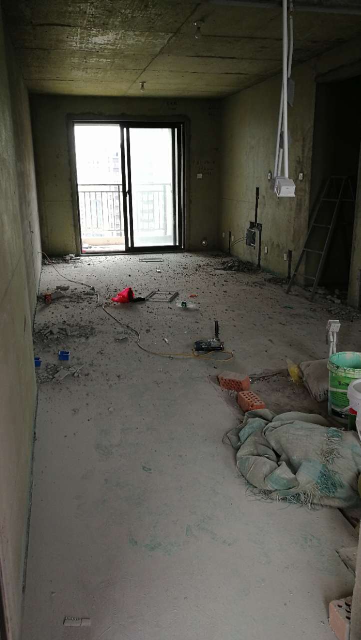进门厨房的墙全部敲掉,门厅旁做鞋柜,厨房门改到对客厅了。地固没干,我给踩了