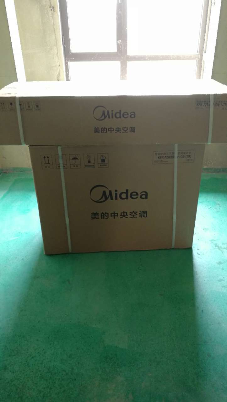 美的的风管机,图片是邻居家安装的。我专门跑到苏州去买的,货到了,还没安装。等阳台砖贴好才能安装,不然铜管贴墙没法贴砖了。