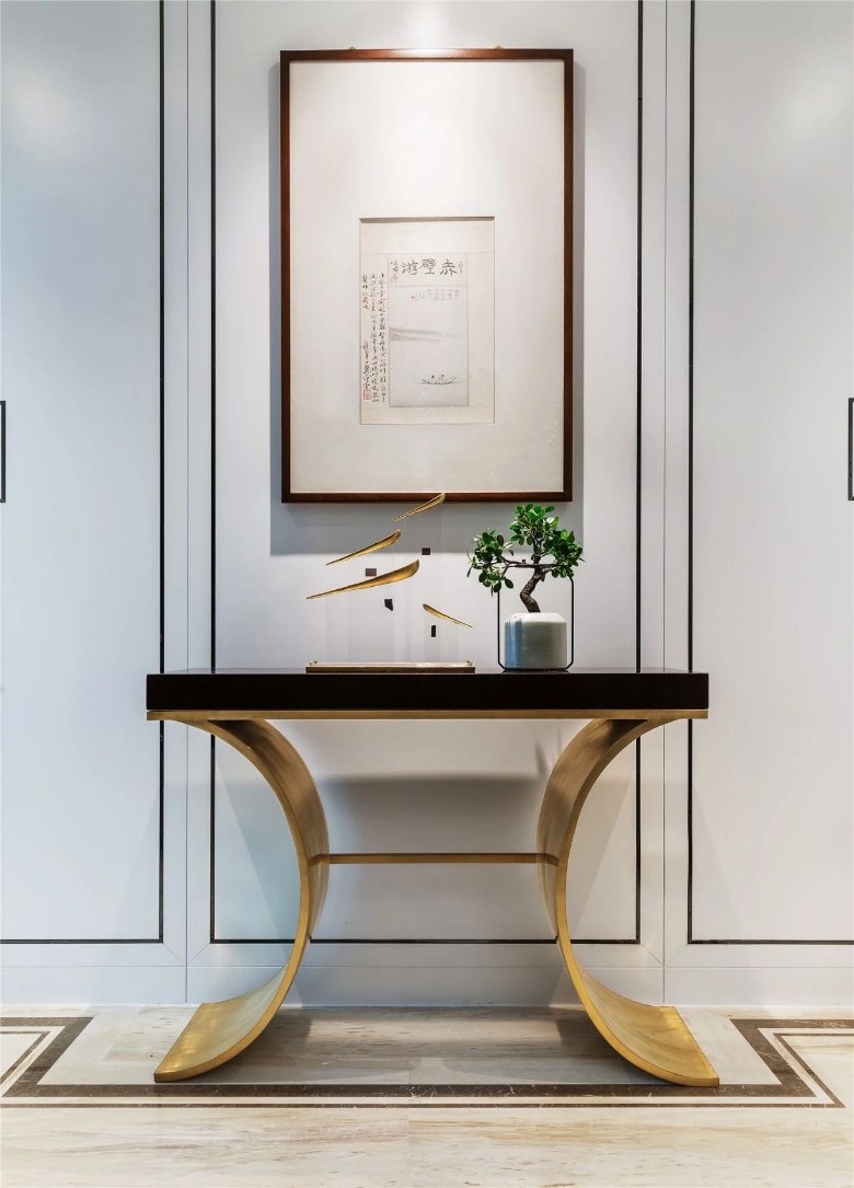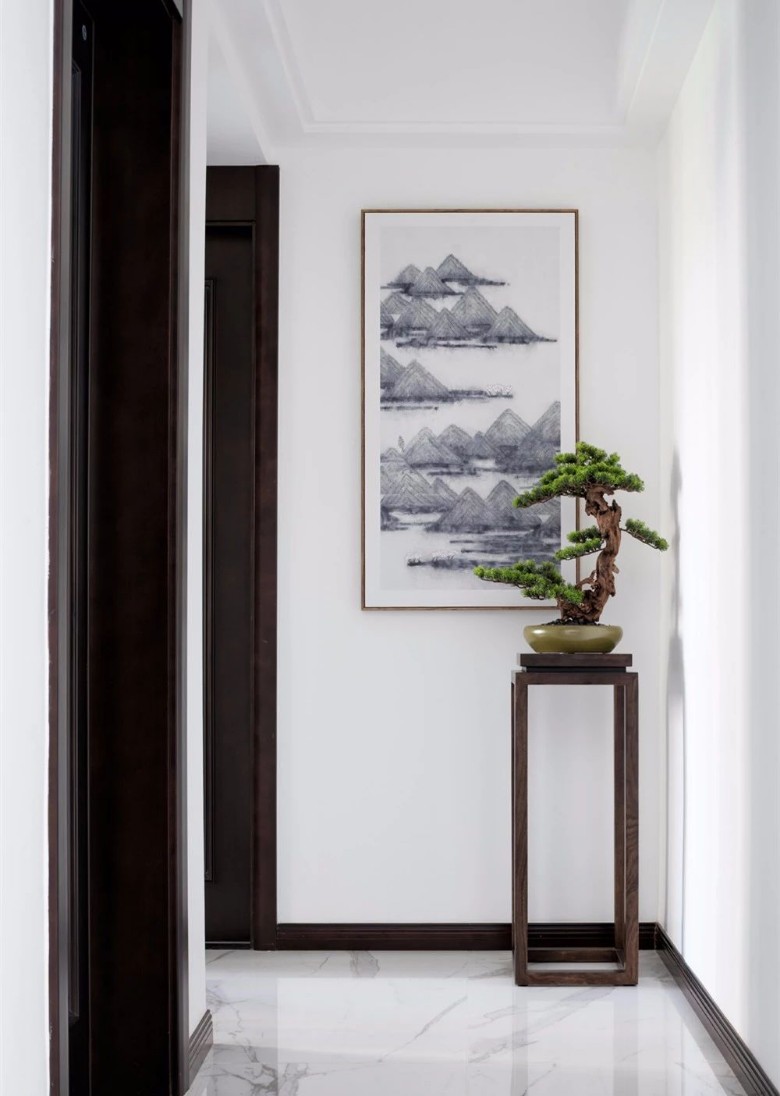 当下的新中式玄关设计,摒弃了复杂的雕花,