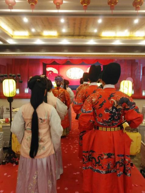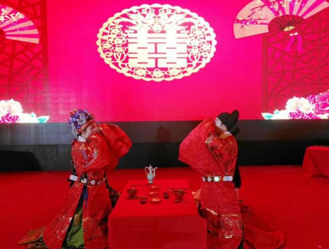“一拜天地、二拜高堂、夫妻对拜、送入洞房”