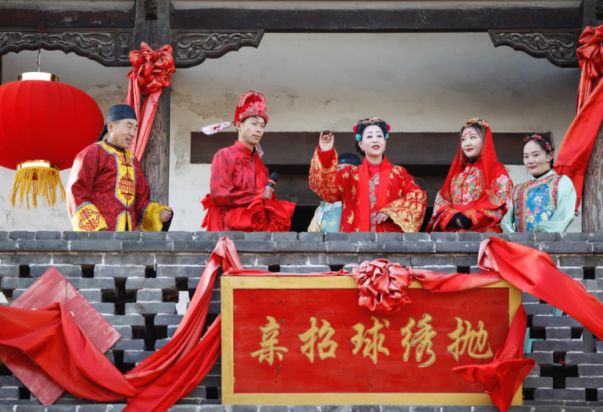 七夕节期间,巴城老街实地上演“绣球招婿”