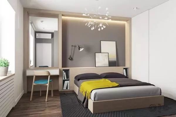 建议采用床与衣柜合二为一的设计,