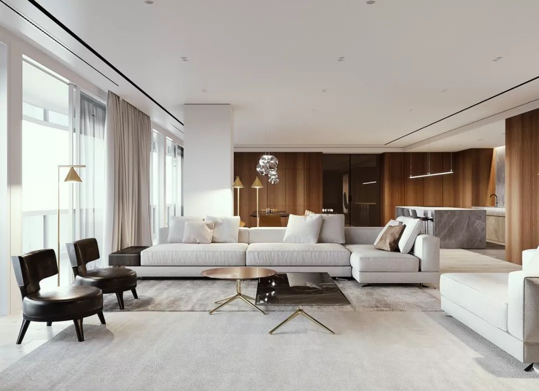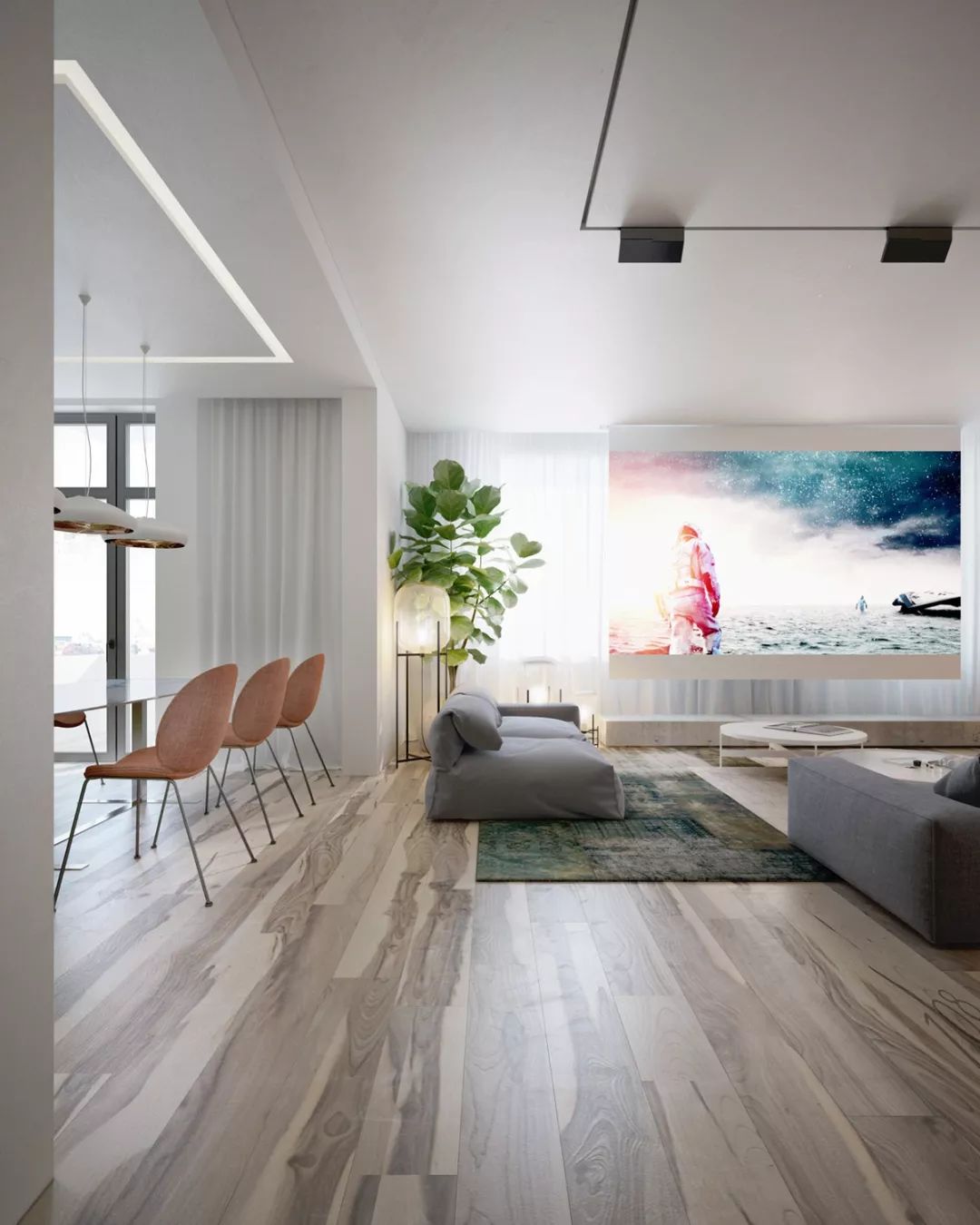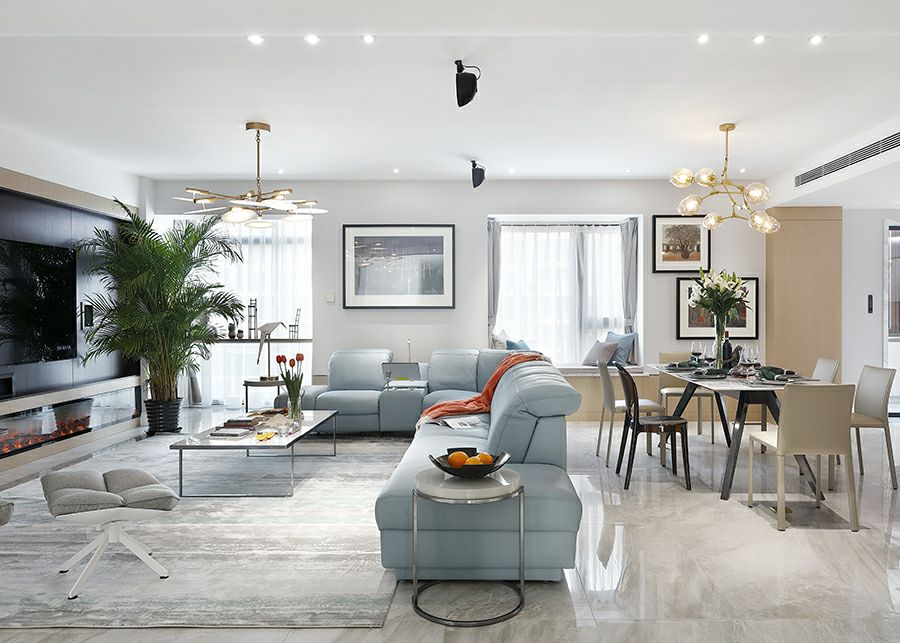 比如:用大面积的落地窗或者打通各房间内的隔断