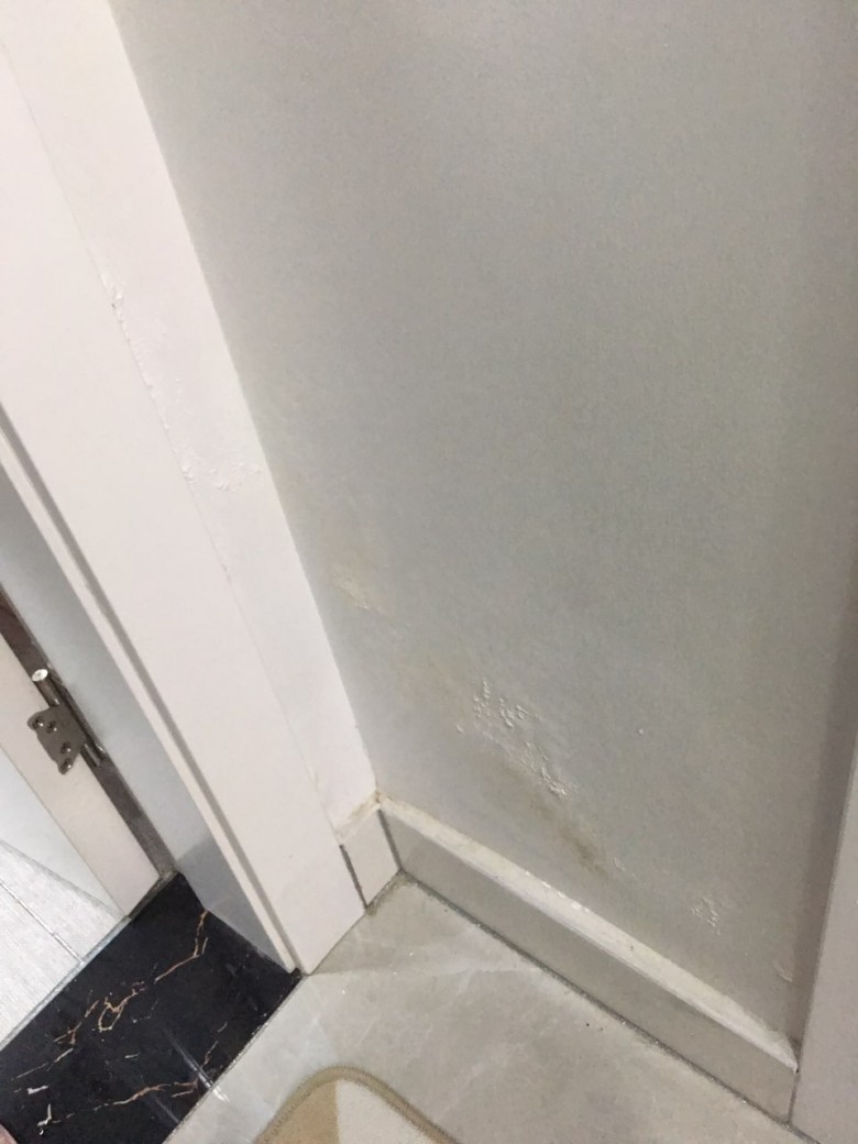 家里装修完入住不到两个月,洗手间和卧室门外墙角渗水,油漆起鼓脱落,有人说可能是台盆热水管渗水,也有人说是洗手间门口过门石没做防水,洗澡水从地砖下面渗过来,顺着过门石门框墙渗漏出来!瓦工本地人不负责任,打电话说不是他的问题,微信把我拉黑,水电师傅说水管走的屋顶,不可能渗到门外角落!有没有检测漏水的,帮忙检测一下渗漏的源头在哪,谢谢!