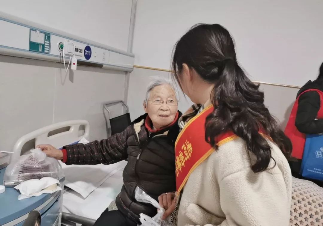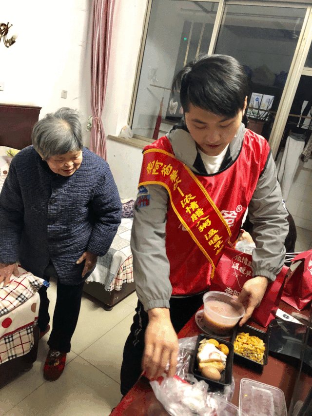 送上一份腊八粥,帮他们试戴耳罩和手套,他们也会拉着你的手和你唠会儿家常,开心地说,“谢谢你们!谢谢你们来看我们!