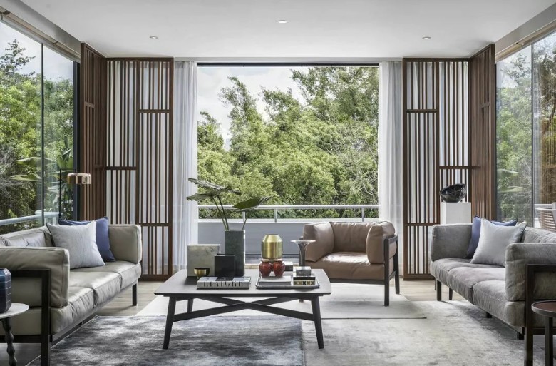 木隔栅、金属黑框玻璃门、折叠门、镂空门等多元材质和造型的隔断形式,可以体现与众不同的装饰美感。