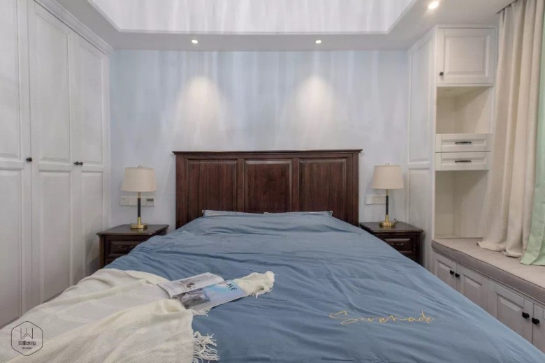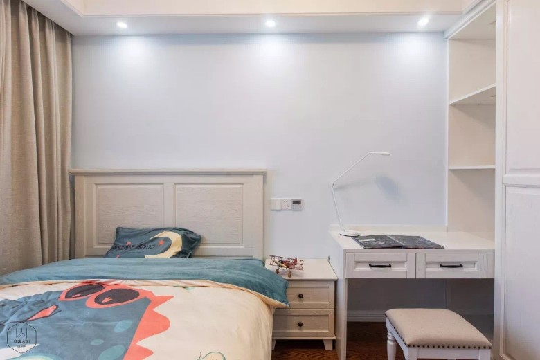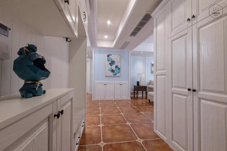屋主说:“我们一直都很想要一个美式的家,但是不太喜欢古典美式的‘做旧’感,想要新家偏时尚简约一些,可以给我们舒适惬意的居住感受。” 在设计师看来,屋主对新家的需求及期望非常明了,简约美式风格即自由浪漫,时尚即不落俗套、与众不同,舒适感则需要对空间氛围及软装家具的把控。 ABOUT THE HOUSE 125㎡简约美式风三室两厅两卫一厨设计公司:印象水仙施 工:印象水仙 HALLWAY 空间中的功能性设计由生活而来,不为对立而生,互为因果相融。 LIVING ROOM 浅蓝色作为客厅的主色调,结合白色石膏线,放大空间的同时给予整个空间清新明亮的基调,再加入抱枕、花艺、毛毯、灯饰等配饰点缀,丰富空间层次,打造温馨舒适的氛围。 电视背景墙采用白色收纳柜以及内嵌电视,在丰富空间层次的同时,也展现出业主的不俗格调与品味。 浪漫细腻的软饰绽放出迷人的光晕,温馨的色调搭配出不俗的品味。 DINING ROOM 阳光、美食,把这两个美好的词汇放在一起,就成了一件非常惬意且浪漫的事。 餐厅延续客厅主色调,桃木色餐桌椅美式风十足,空间用金色元素点缀,更显精致。 kITCHEN 白色木质橱柜搭配仿古地砖,极具质感;阳光从窗中渗入,所有的颜色展现出本色的自我,空间格局更是暖人心脾。 BEDROOM 卧室大飘窗设计,明亮通透,向暖而行;雅致悦目的色调,给人带来直抵心灵的舒适品质感;厚重的美式家具与浅色空间融合,彰显设计的独到之处;飘窗置物柜的设计,将收纳空间最大化。 PARENTS'ROOM 父母房的打造则显得更为沉稳,保留古典色泽的实木床与地板,温和缱绻,让居住其中的长辈有一种温暖舒适的感受。 CHILDREN'S ROOM 这是儿子房,以蓝色为主色调,清新大气;由于空间不大,只放了一个床头柜,旁边放置了一张书桌,这里同时满足了儿子睡眠、学、休闲的需求。 TOILET 消除疲劳的最好方式就是洗澡,在工作一天的时候或者运动完之后,洗一个舒舒服服的热水澡,消除一天的辛劳。而干净的空间也能为洗澡的心情加分。