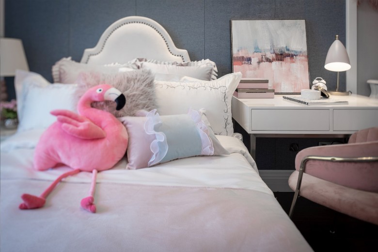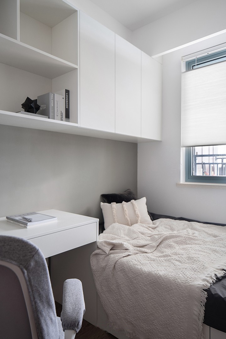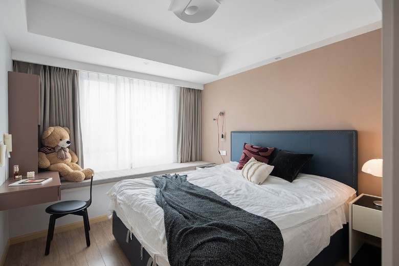 各式各样精巧的摆件陈设,线条简约的和风柜面装饰和充满童趣的挂画,在空间中对话碰撞,表现出饱满而趣味的明快气质。