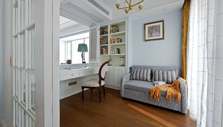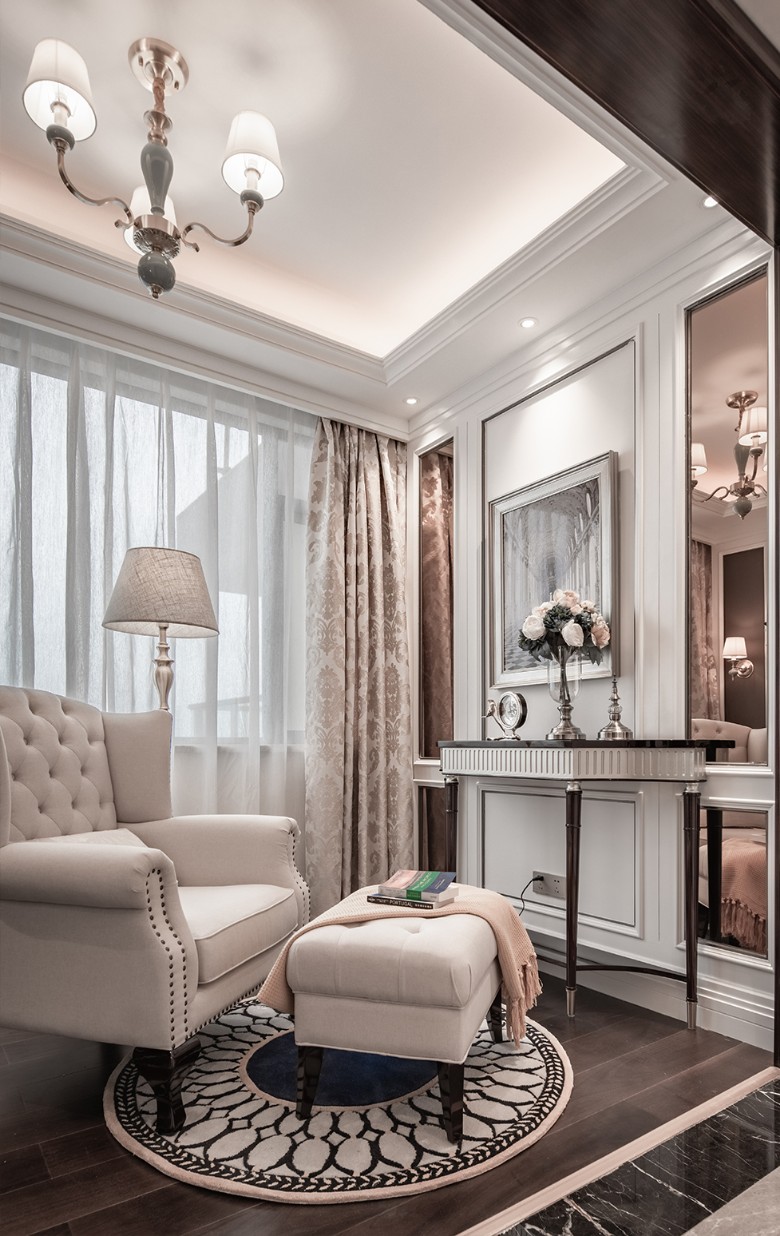 全木质衣柜收藏着业主四季的色彩。简单的空间布局,可以让他们在这里心无旁骛的试穿各种衣物。美好的一天就从这一方天地开始。