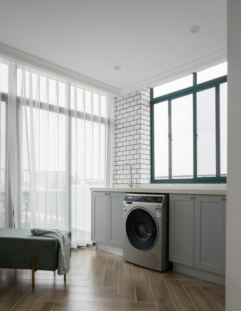 灰色风格的瓷砖与原木材料结合搭配,质朴的肌理感最大限度地表达着居住者对自然美学的喜爱。THE END—