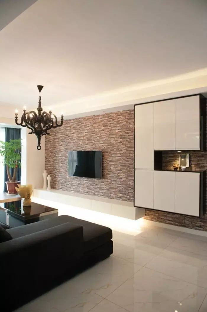 电视墙采用不同的色彩,创造的空间性格形象是不一样的。一般而言,黑白灰、无彩色系列能表达静谧、严谨的特点,同时也表达出简洁、明快、现代等风格:浅黄白色、浅棕色等明度高的色彩,能传达出清新自然的气息;艳丽丰富的色彩,则可以表现出十足的活力。