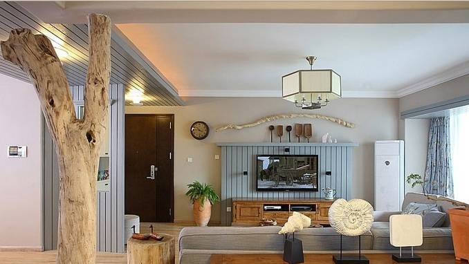 在电视墙区域饰品的布置中,不宜摆设或悬挂过多的装饰品。尽管装饰品之间本身很协调,但这种集中布置形成的“密”同客厅其他墙面的摆设和悬挂品未形成疏密间隔、相映成趣的搭配,就显得不美观。