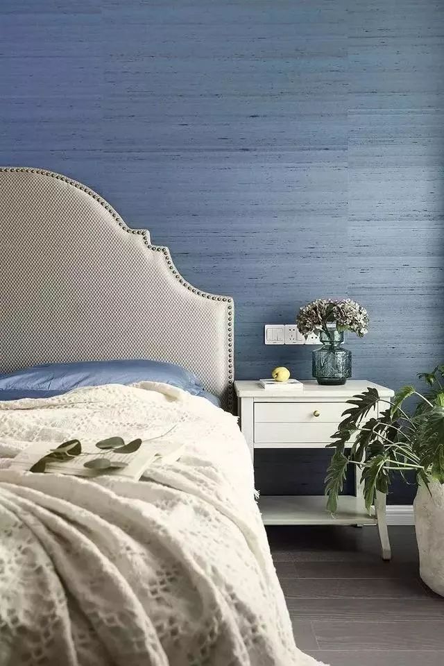 主卧蓝色与白色的搭配,美式铆钉床头,轻柔舒适的床上用品,整体优雅尊贵,休闲舒适兼具。