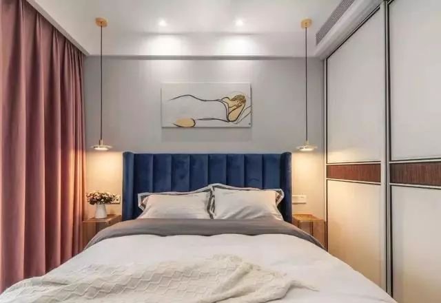 整体上,次卧的面积与主卧的面积相当,为了满足储物需求,在次卧安装衣柜,推拉门节省空间,使布局更紧凑一些。虽然只有一个衣柜,但是基本满足二口之家的储物需求。