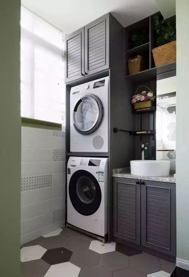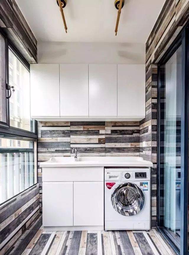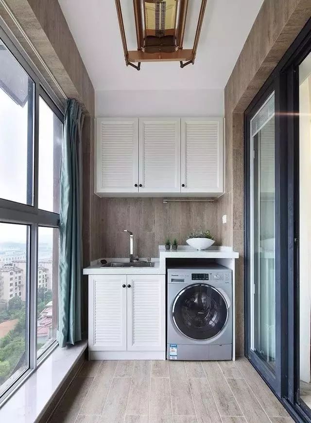 想要提高阳台的颜值,最主要的就是搭配,把墙地面、洗手台、柜子和吊顶都完美的集合起来,自然颜值就高了。