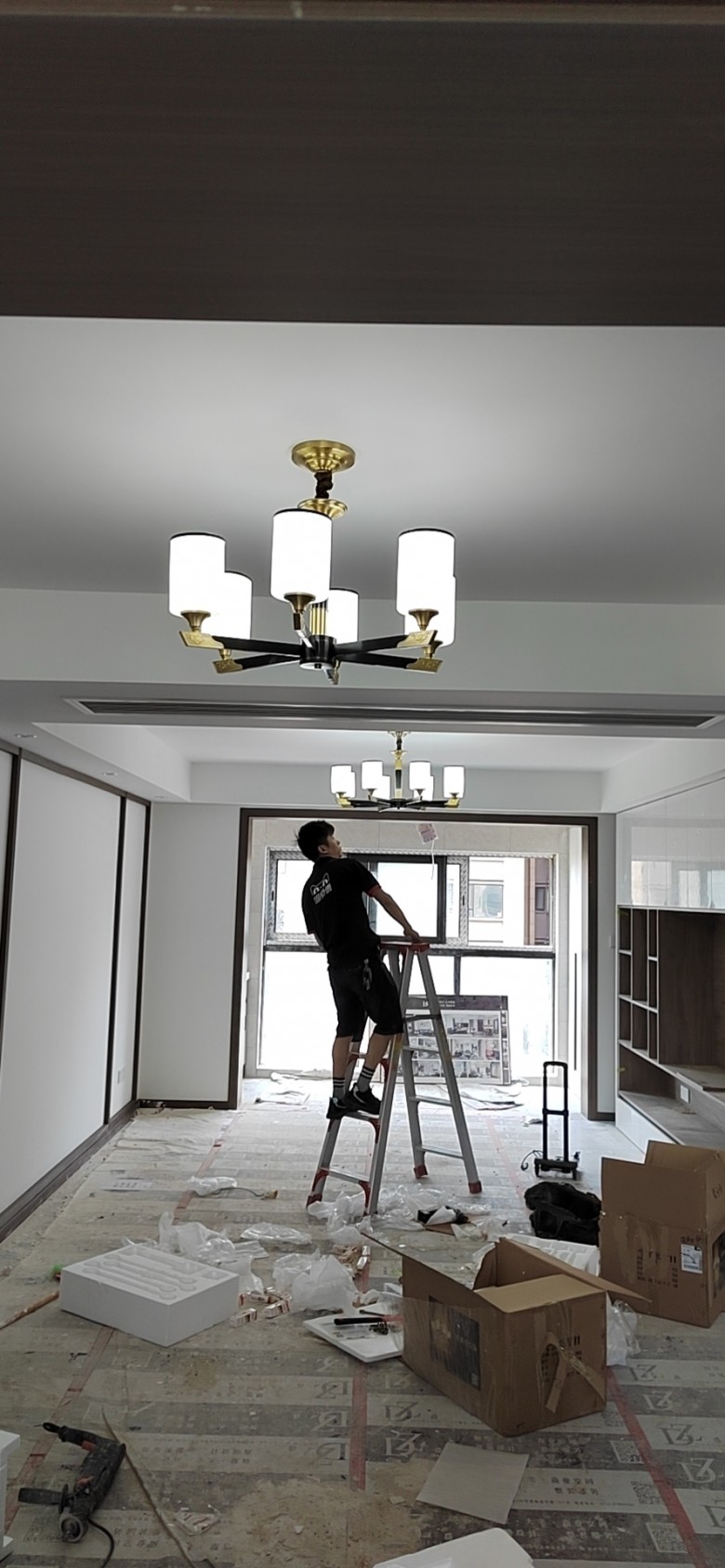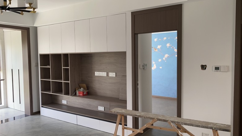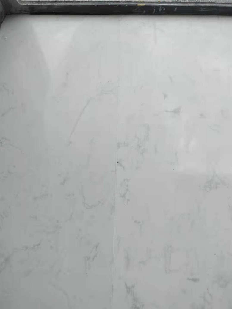 第二回,等了一周时间总算凑到了安装工的时间来修补了。原本说好的时间,临时又变卦,居然还说周末来搞,一会儿就好。当物业是傻瓜,不知道安装这种是有噪音的吗?在我一再坚持下总算是按原定的时间来修补。心里真是一百个不放心,毕竟家里装修都已经完工了,现在这样墙是肯定被破坏了,还有门套,地板都是要小心的,所以一直亲自到盯着。来的时候赶忙把保护膜重新给铺上。安装容易拆就难了,老板的老父亲毕竟不是专业的,不等安装工来就开始,把小的一块人造石给搞掉了一块,他却轻描淡写的说用502粘一下,到时候一磨就可以了。谁知道他不争气,技术真的不行,小的那块被他一撬,断成了两块,他却还是说502一粘一磨,当时我就火了,事先我也把不接受的情况和你们讲,现在出现这种情况,居然给我这样的处理方式我是肯定不会接受的,沟通后他们同意给重新换块人造石。