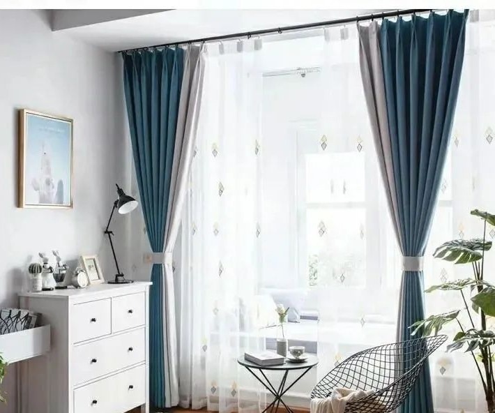 这种拼色窗帘一般用深浅色搭配,这样会提升视觉愉悦感。