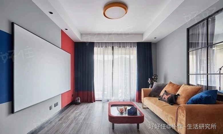 建议不要与主家具和占比例大的颜色选择相同色系,撞色会使空间颜色单调。