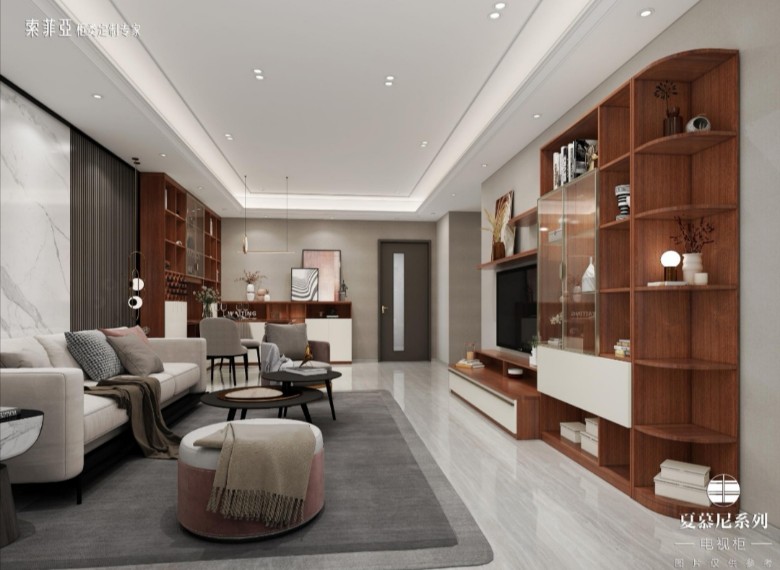 展示了索菲亚近期推出的新产品尤其是智能家居系列指纹解锁进家后电动窗帘、室内照明灯、电视等依次自动打开关门离家后电动窗帘、室内照明灯、电视等依次自动关闭极致演绎了现代轻奢的高级感和温馨舒适的实用主义