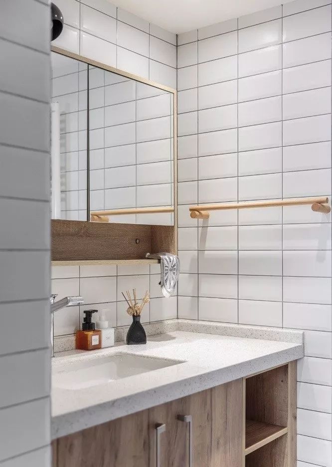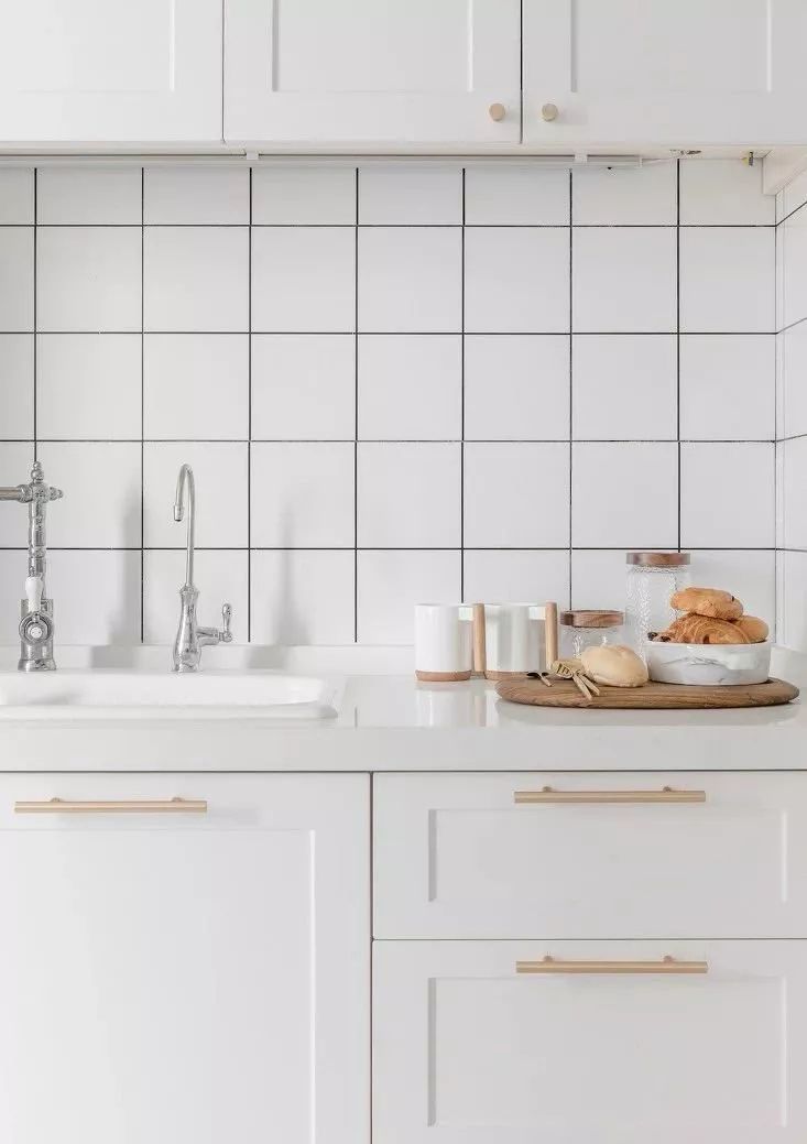 各种小白砖都可以搭配深灰色美缝,对比鲜明,线条感强。建议不要用纯黑色,太死板,就像买女生买眉笔不买纯黑色,是一样的道理。