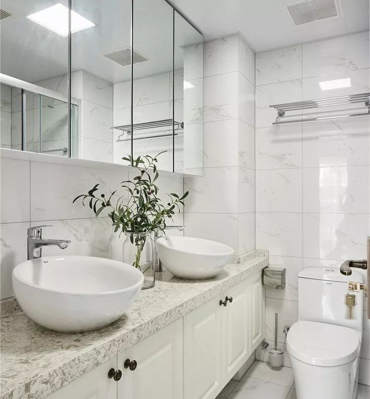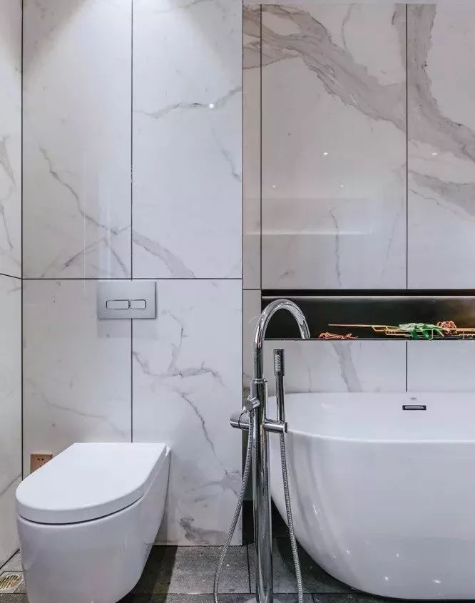 比较流行的大理石纹如爵士白、鱼肚白、雪花白等等,都可以搭配白色缝。选择相近的灰色也没有违和感。