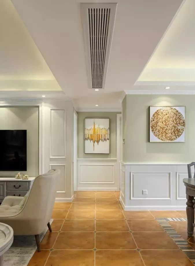 米白色仿古砖,在美式风格的装修里常见,搭配象牙色是最常见搭配。