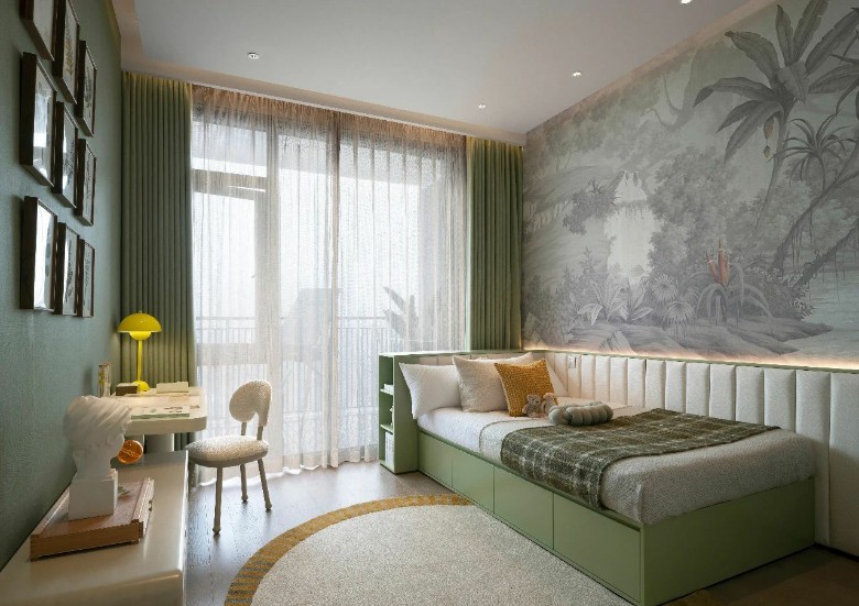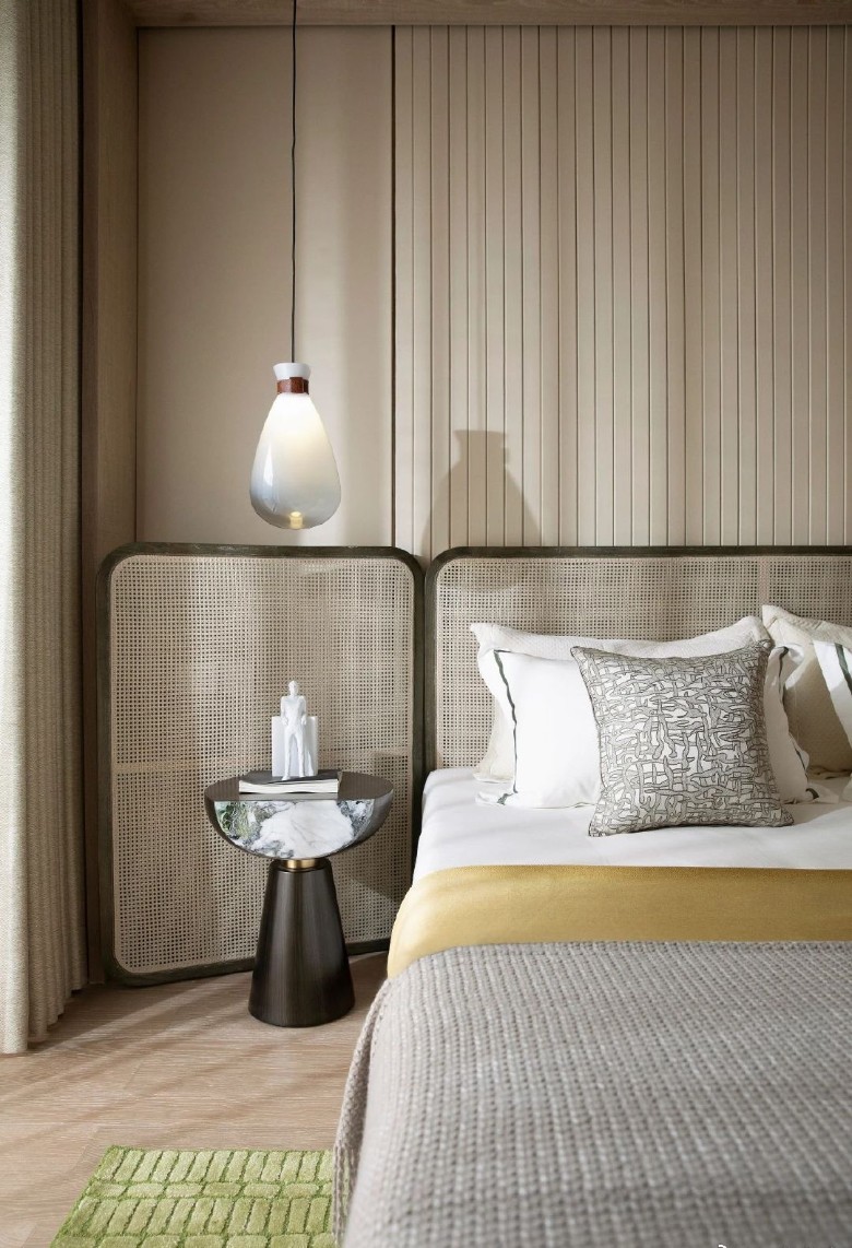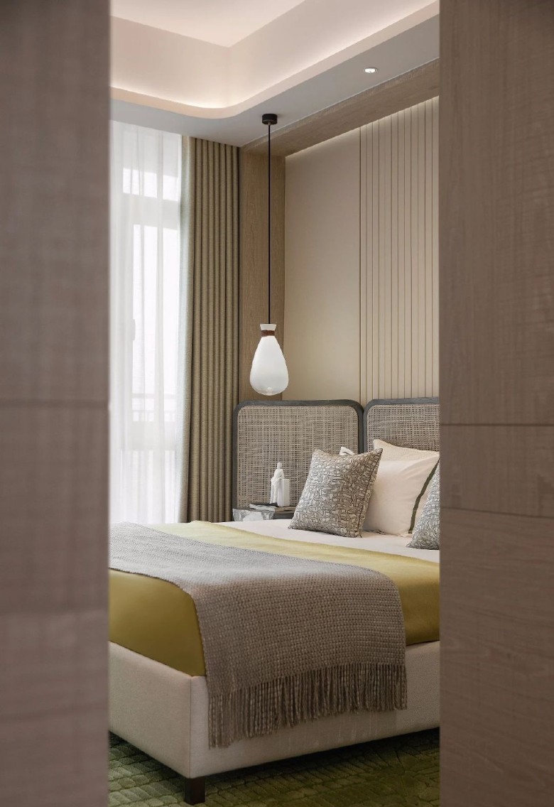 静雅写意,贴近自然的空间,让宾客置身其中感到随意且放松,宽敞的落地窗洒下充分的采光,增加室内舒适感及延展性。那一抹木色是跳跃的音符,谱写出充满光的天地,充满情景感与魅力交错的空间。将自然元素的气质与色彩运用于空间中,使空间沉稳且惬意,素静且不失优雅。安逸的氛围蔓延四周,人与自然的吸引力于顷刻间呈现并相互感染, 空间中最触动内心的就是浑然天成的安宁与纯净。