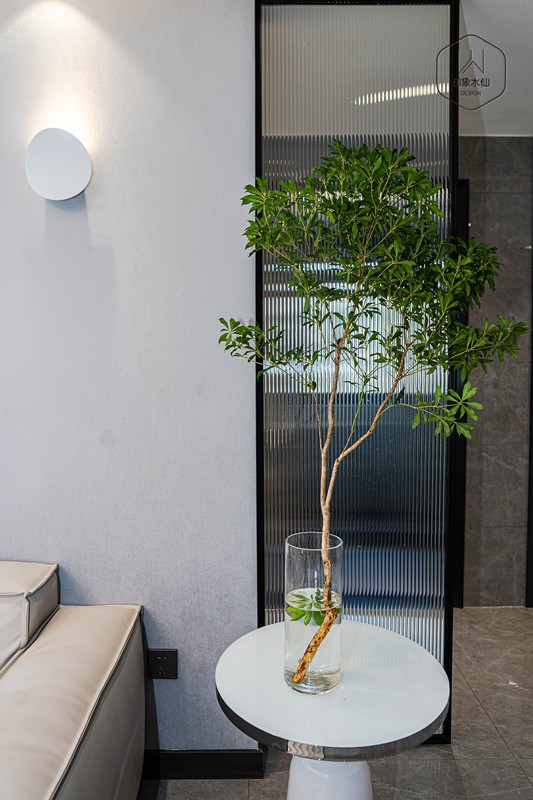 本案是三口之家,经过设计师跟屋主相互交流后,设计师了解到屋主家是需要留一定的收纳空间的,毕竟有很多小孩子的东西;再者在色调上,设计师结合屋主的喜好,硬装上,墙面选择灰色墙布,不过整体设计肯定要稍微明亮一点,家具的选择和软装的搭配尤为重要。下面就让我们好好欣赏这个温柔之家吧图片。 LOBBY | 玄关