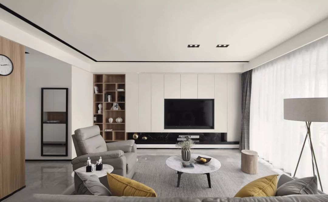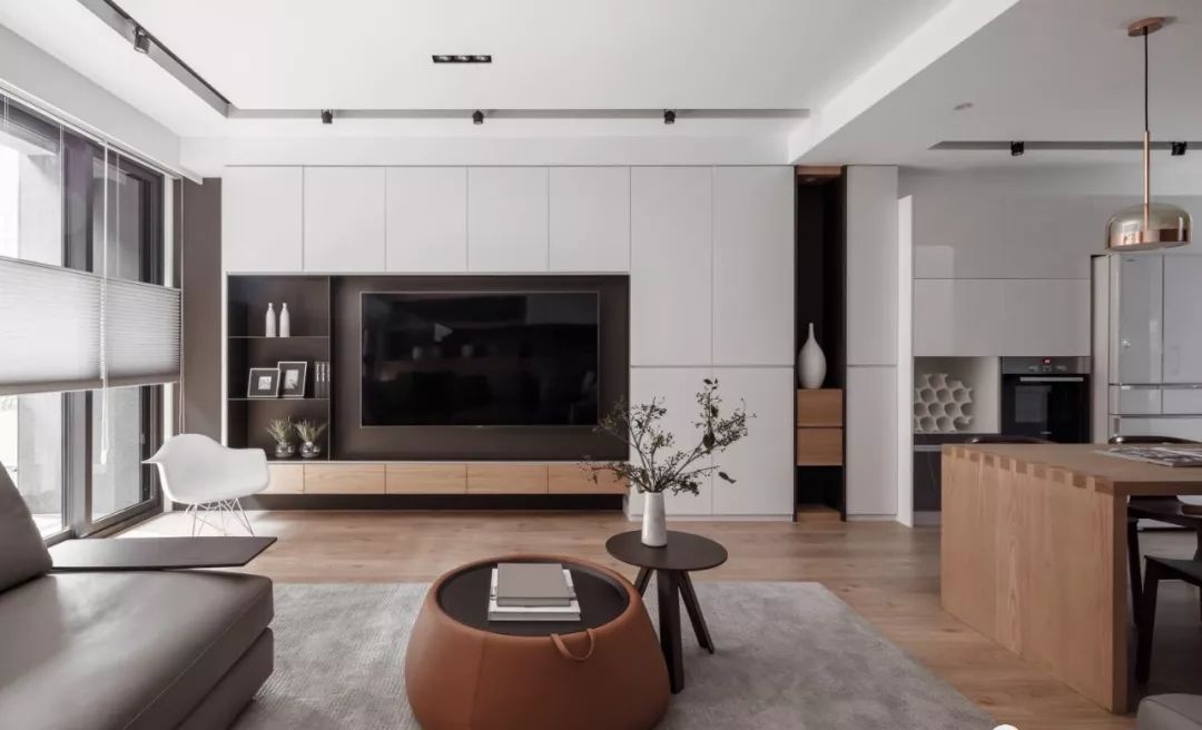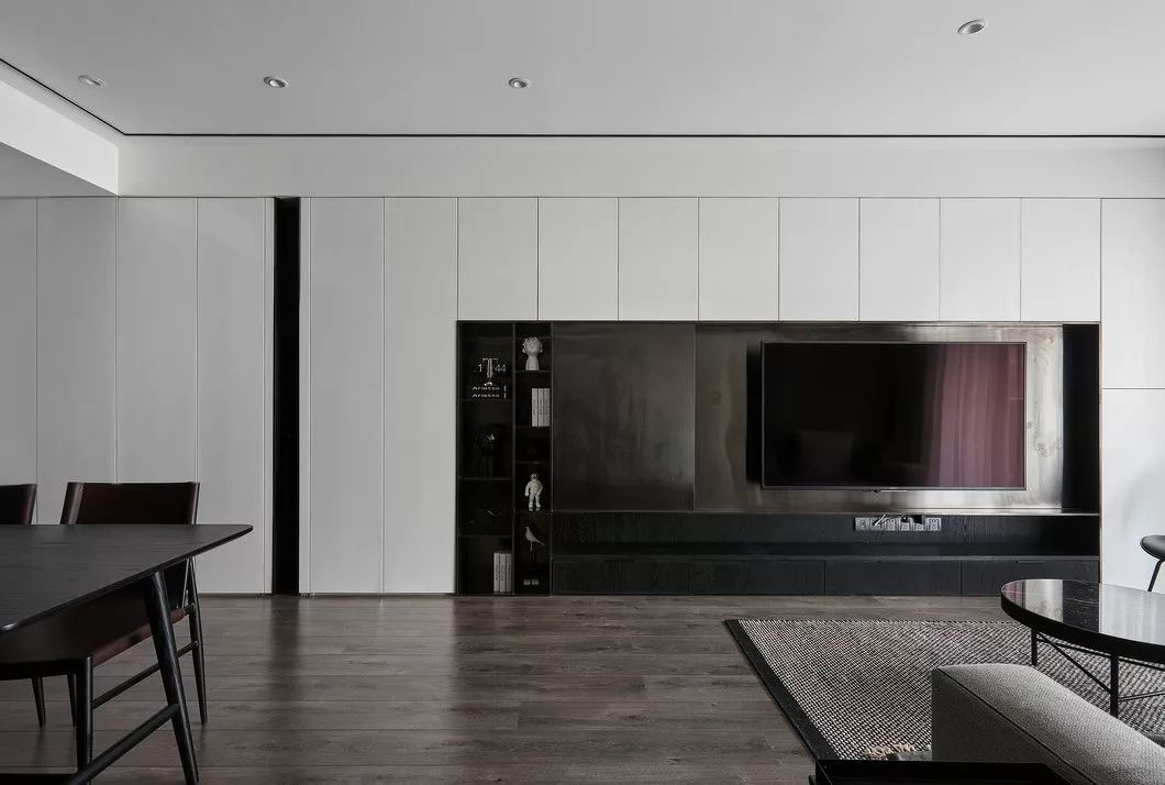 随着极简风的盛行,人们越来越追求整体性强的简洁设计,将所有东西都藏起来,达到那种“眼不见为净”的效果。比如:没有把手的柜子、看不见的门、与墙面齐平的电视、放进柜子里的家电……