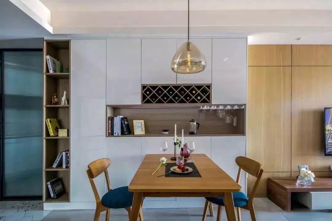有凹陷的墙就完全可以利用,没有的话也可以在做成一整面墙的餐边柜,整洁大气。