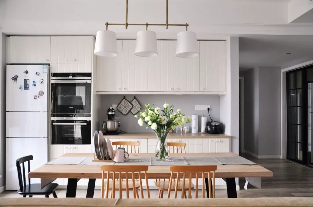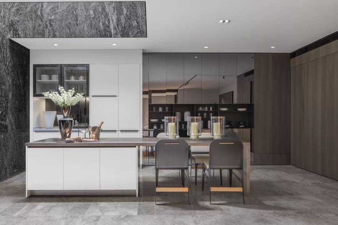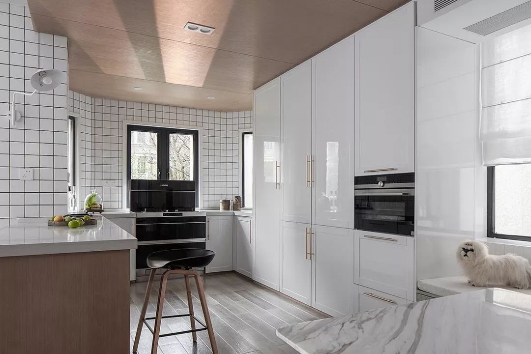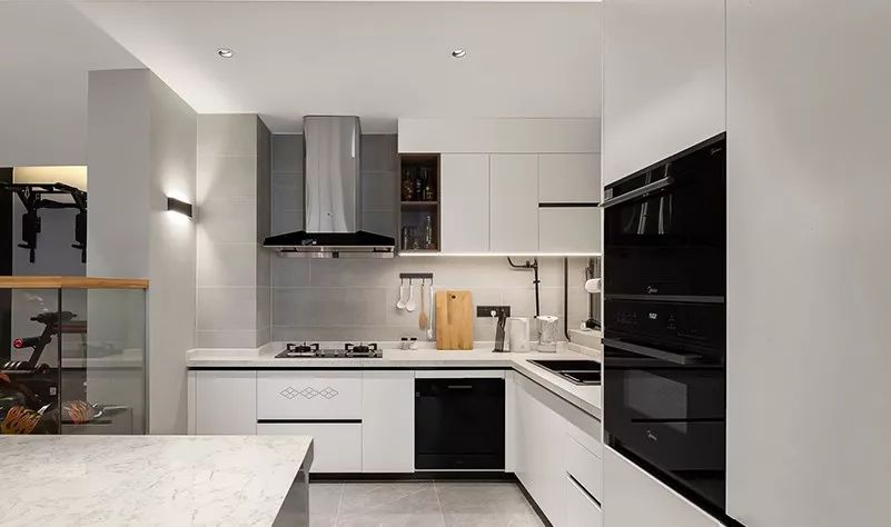 厨房差不多是家中电器最多的地方,尤其是烤箱、洗碗机、微波炉、消毒柜等这类厨具电器的体积都很大,因此特别适合做成内嵌式的设计。