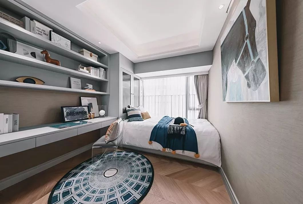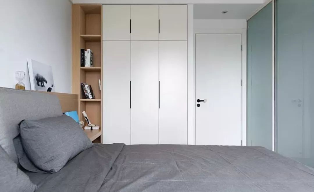 刚好利用凹陷的墙体空间,内嵌式的衣柜可以与整体的卧室环境更好的融为一体,让卧室空间更加宽敞,美观又实用。