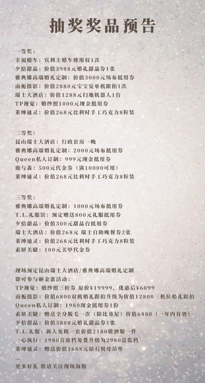 即可领取超值豪华伴手礼一份和婚礼秀抽奖券一张、