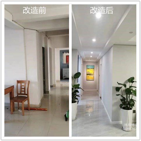 过道之前凹凸不平,改造后就整洁多了,白色墙面看起来就非常清爽,过道尽头也是一幅挂画,给这个白色的空间增色了不少。