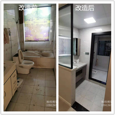 客卫改造,之前的卫生间又旧又脏,地面、墙面都是污垢。改造后,客卫实现了三分离,把洗手池搬到了外面,马桶改用蹲便器,客人来了使用起来更卫生。淋浴代替了原来的浴缸,不容易藏污,容易清洗。