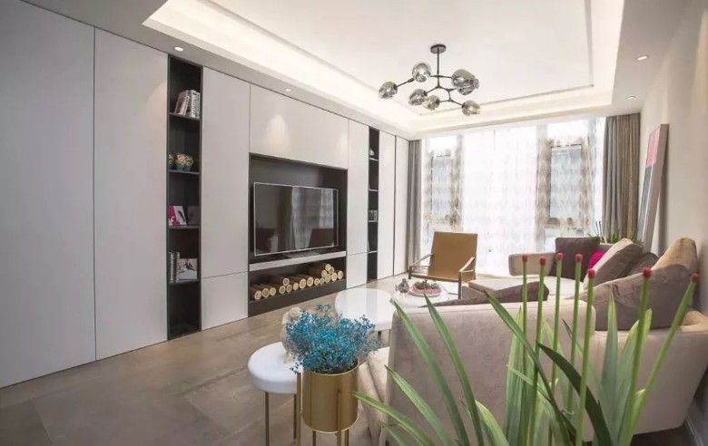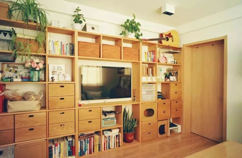 对于面积较小的户型,或者有较多的书籍或菖蒲无处可放的情况,那么家里自然是少不了收纳与展示空间,客厅的电视墙在多数人的印象中就是作为放电视的地方,然而许多人家一年到头也不看几回的电视,放着一个大电视墙在上面,浪费钱不说,还占用空间!