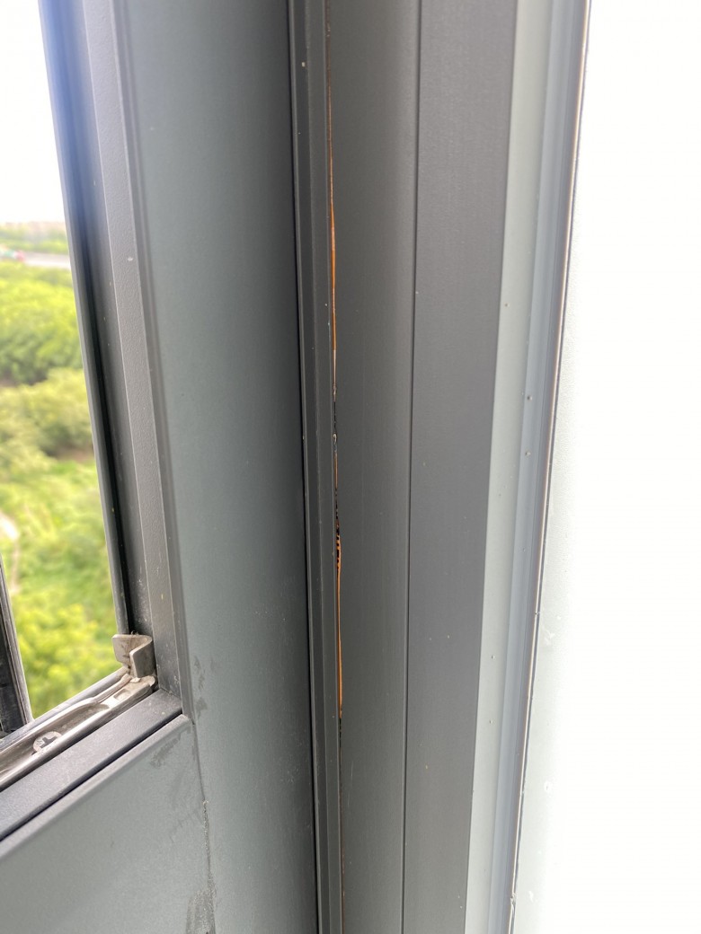 2刚收尾半月,“烟花”时次卧飘窗渗水了,大家都知道这次台风昆山雨量并不算大,但……(其实在出现渗水的前几天,清理卫生发现外面很多没打胶,反映过去回复说很多外面都不打的,我说深水怎么办,回复:前几天暴雨渗了吗,无语…周末“烟花”直接………