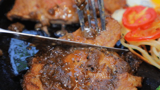 颜值超高的英伦风情贵妃鸡排,女生的最爱!金黄酥脆,外焦里嫩,淋上浓郁的黑胡椒酱汁,咬上一口,丰腴的肉汁顷刻充满口腔!