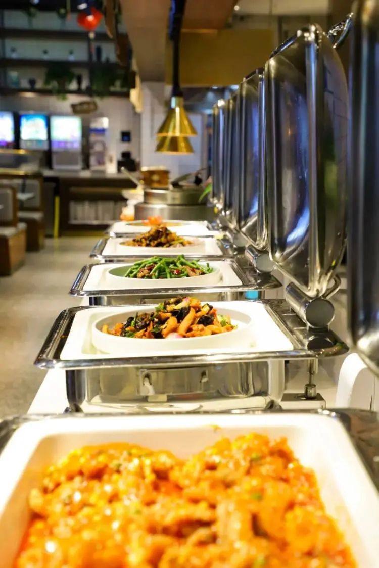 各种炒菜、烧菜和炖菜,统统都是不限量随便吃,看起来就超有食欲,用专业的炉子保温,保证随时吃的时候都是温热的!
