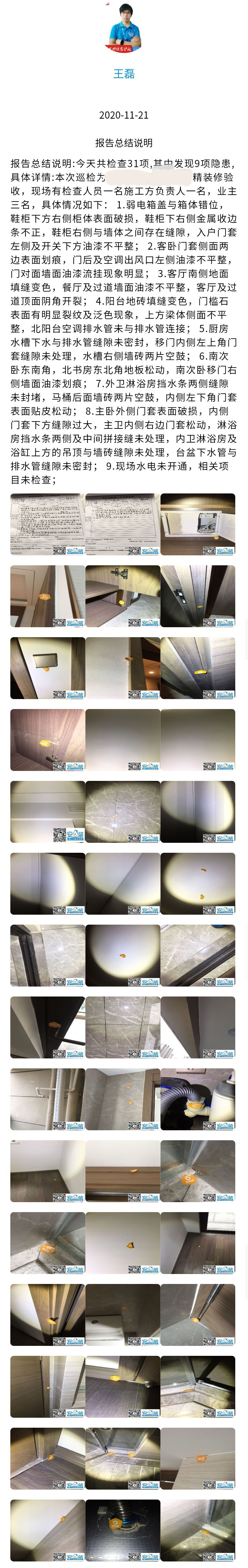 5、领取报告:验房当天会发送电子图文报告,验收完后3日内出具验房报告。