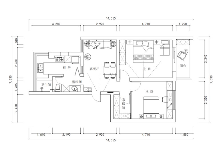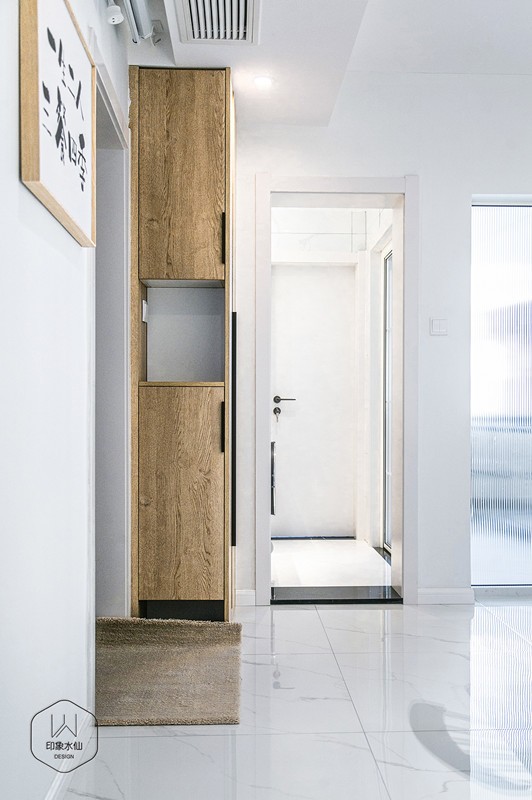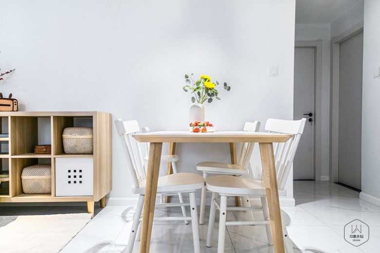 学区老房也有春天Renovation of old houses面积 / 81㎡风格 / 现代风户型 / 两室一厅一厨一卫硬装设计 / 印象水仙软装设计 / 印象水仙 施工单位 / 印象水仙 这是主城区的一套学区老房,屋主是幸福的一家四口,女业主经营一家教育机构,男业主的职业是医生,老大上四年级,老二上幼儿园,屋主喜欢无印良品风格,希望自己的家简约温馨。老房客餐厅一体,光线很灰暗,厨房和卫生间空间不规整,设计师从光线和布局出发,看改造后的完工实景可以看到一个明亮且互不影响的客餐厅独立区域,厨房和卫生间的改造设计也非常符合屋主的日常生活;还有房子纯粹是给孩子学用的,空间过滤掉了所有的娱乐功能,但屋主希望一家人可以窝在一起看电影,就设计了投影功能,温馨满满。原始结构图 平面布置图 POECH 进门处设计师考虑屋主收纳的需求,选择双侧可开的柜子,原木色让主家一回家就能感受到温馨的气息。LIVING ROOM 客厅空间硬装上使用白色与灰色相结合,软装采用跳跃的颜色来搭配,增加生活氛围。 原木色边柜,在浅色系空间温柔大方,这幅装饰画的选择,使整个空间都由此活跃起来,绿植的加入,也让空间遍布生机,局部亮色的点缀,给予居住者独特的愉悦感。 DINING ROOM 空间布局的设计,客餐厅比邻也并不觉得拥挤,反而一家人窝在这里,非常的温馨。餐桌椅选择白色和原木色相结合的设计,简约温馨;周围的软装配合灯光效果传达出浓浓的生活气息。 KITCHEN 厨房的地砖、墙砖、吊柜,设计师均选择浅色,在视觉上更显明亮宽敞,原木色的加入让厨房氛围温和起来。 在屋主入住后的厨房也不再是冰冷的家居摆设,而是被生活气息包裹,两人一同品尝人间烟火。 BEDROOM 1 主卧在保留整体灰色调的基础上,加入了相对跳跃的色彩,适合屋主带二宝居住,考虑到后期二宝需要独立睡觉,需要提前预留一个空间放二宝的床,这个空间完全满足了屋主后期的需求。家具选择原木色平衡着整个空间,使空间视觉感受非常温暖;吊灯的点缀让空间不经意间透露甜美气息。  阳台区域设计了简约的书桌和收纳柜,原木色延续卧室家具的色调,阳光洒落的那一刻,温馨满满;移门的设计,独立书房的空间腾出来了,适合屋主安安静静地办公、学。 CLOAKROOM 主卧里隔出一个衣帽间的空间,满足了屋主的收纳需求,房子虽然不大,但一点不影响屋主想要衣帽间的需求,嘻嘻。BEDROOM 2 次卧是留给大儿子居住的,选择暖色木地板,无声的温馨感把空间包围;床头背景以墨绿色质感的艺术漆渲染出静谧而浪漫的氛围,搭配黑色木质床,整体用色上时尚高级。 原木色收纳柜及书桌的设计,稳重不乏热情,精致舒适,满足儿子对家的畅想。 WASH ROOM 卫生间以白色、黑色、木色为主,空间清爽整齐、大方雅致,干湿分离的设计,更适合屋主的生活需求,灯光的设计结合空间卫浴的选择为,为空间注入现代的气息。