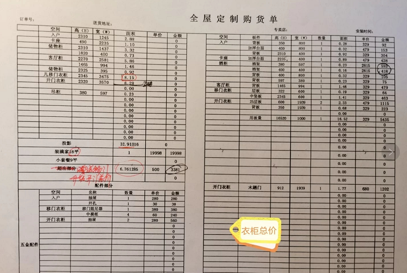某业主称自己花了6万多元的全屋定制
