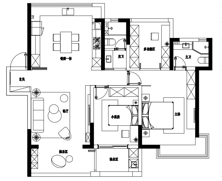 餐厅与客厅直接设计了玻璃移门,做饭的时候关上玻璃移门,隔断了油烟,不隔断光亮!